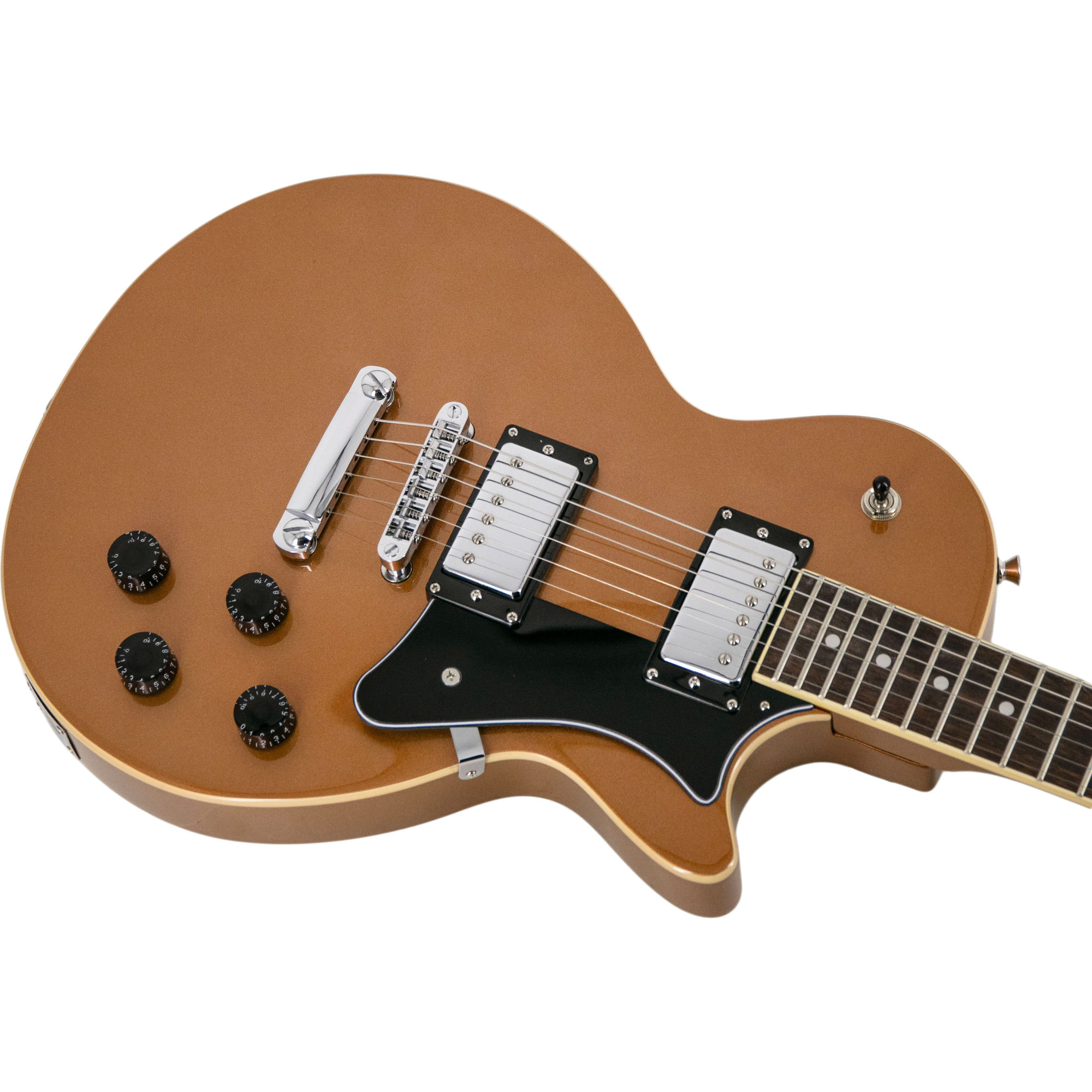Der geschraubte Ahornhals im C-Profil liegt angenehm in der Hand und ermöglicht eine kontrollierte, dynamische Spielweise. Das Lorbeergriffbrett mit 12" Radius bietet eine ausgewogene Balance zwischen Akkordspiel und Bendings. 22 Medium-Jumbo-Bünde unterstützen saubere Intonation und komfortables Greifen über das gesamte Griffbrett hinweg. Mit einer Mensur von 24,75" erhältst du das vertraute Spielgefühl klassischer Singlecut-Modelle mit geschmeidiger Saitenspannung.