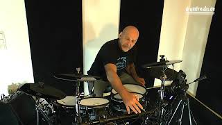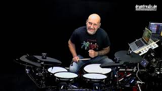 A real highlight: the 14" snare with a genuine wooden shell is mounted on its own stand and offers familiar handling like the acoustic original. This setup also prevents crosstalk to other pads. You immediately feel "at home".