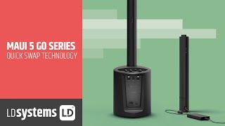 For unmatched sound quality in all applications, the column system features LD Systems' LECC DSP with multiband limiter, equalizer, compressor, and crossover. The integrated 4-channel mixer offers separate volume controls for input channels, master and subwoofer, as well as a variable treble boost for quick and balanced sound adjustment. Additionally, LD Systems' quick-swap technology allows immediate, hassle-free battery replacement for practically unlimited operating time of the MAUI 5 GO 100.