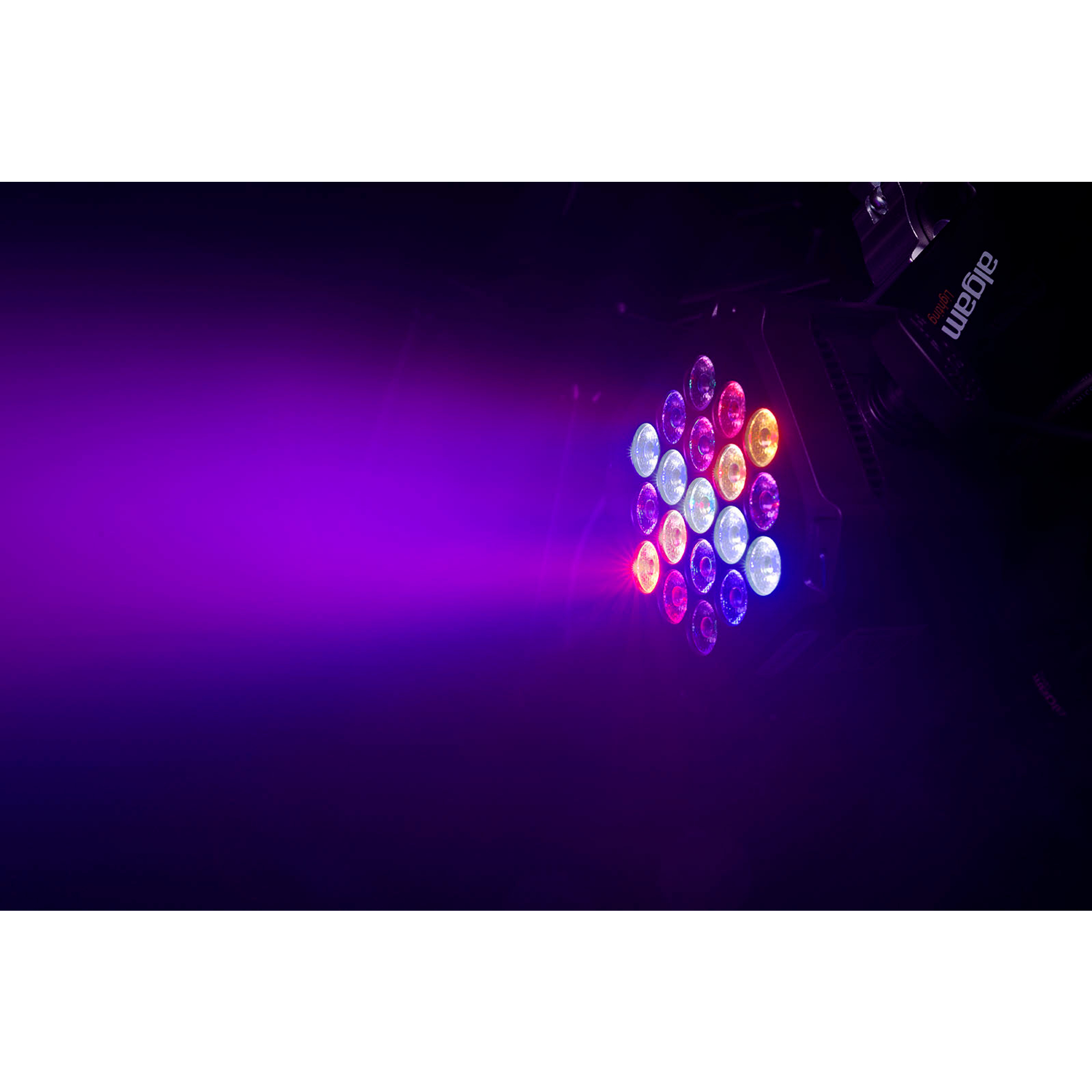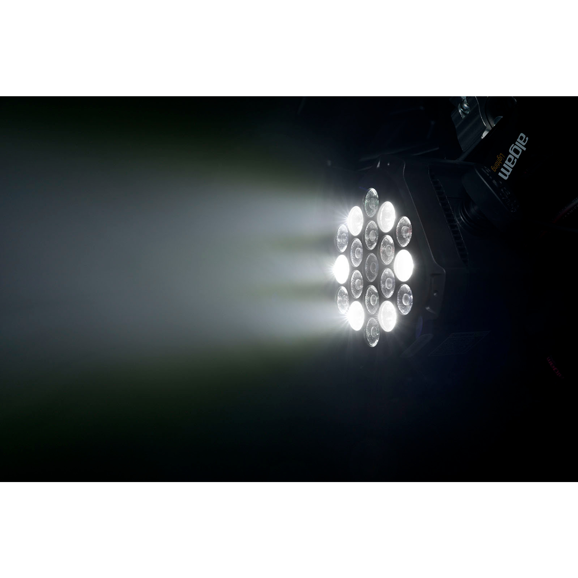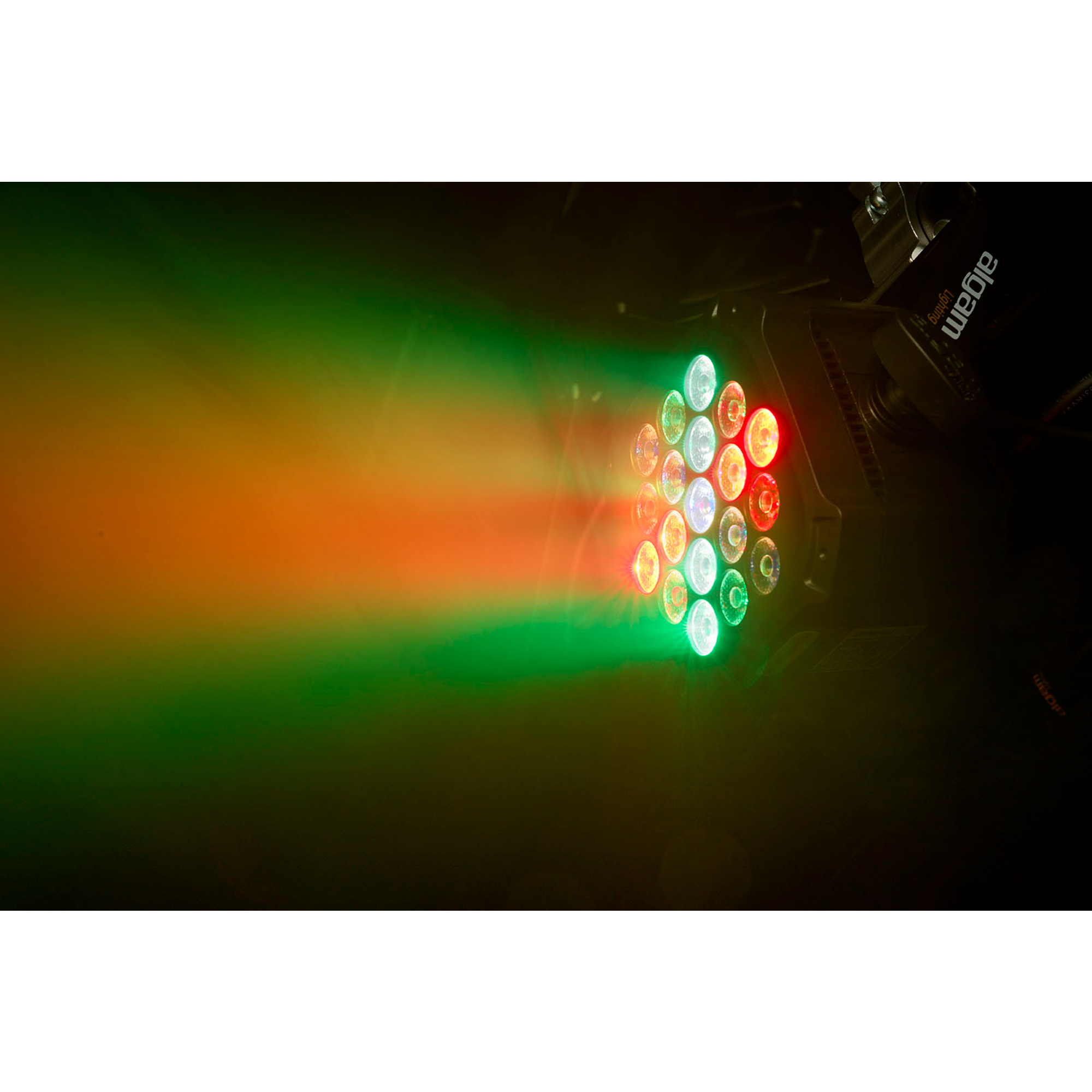 - Fuentes de luz: 18 LEDs de 1 W (4 rojas, 4 verdes, 4 azules, 6 blancas) + 1 LED RGB de 3 W