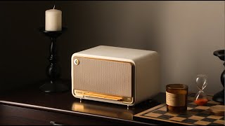 El EDIFIER D32 es un altavoz combinado de sobremesa moderno con estilo retro. La carcasa de madera hecha a mano, la rejilla trenzada y el panel de botones tipo acordeón definen su apariencia. Encaja perfectamente con cualquier tipo de decoración.