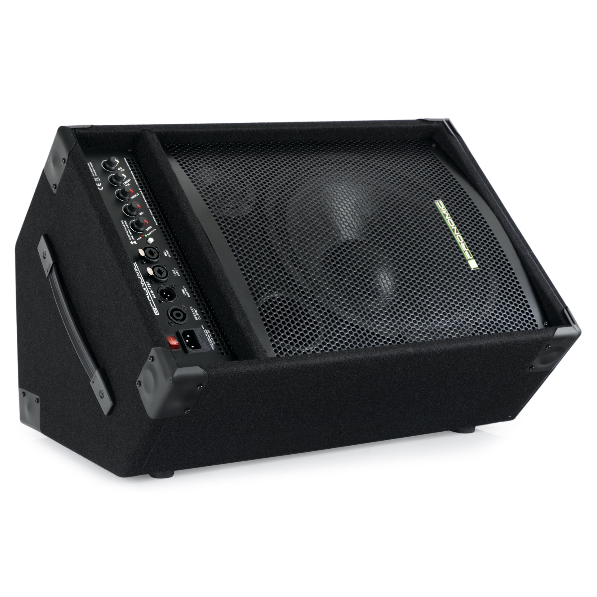 La Pronomic KAM-12 offre non seulement le son brillant attendu ; la version moderne est même équipée d'un récepteur Bluetooth. L'enceinte peut être utilisée debout, couchée ou montée sur un pied, et il est possible d'enchaîner un grand nombre de ces enceintes entre elles. Toutes les commandes et connexions sont accessibles à l'avant — un vrai plus pour les musiciens. L'amplificateur intégré alimente le haut-parleur 12" et le tweeter 3" avec 120 watts au total. Cela suffit pour atteindre un niveau de pression acoustique maximal de 120 dB SPL, garantissant un signal de monitoring clair et non saturé même face à une batterie acoustique. L'égaliseur 3 bandes permet d'ajuster le son selon tes préférences.