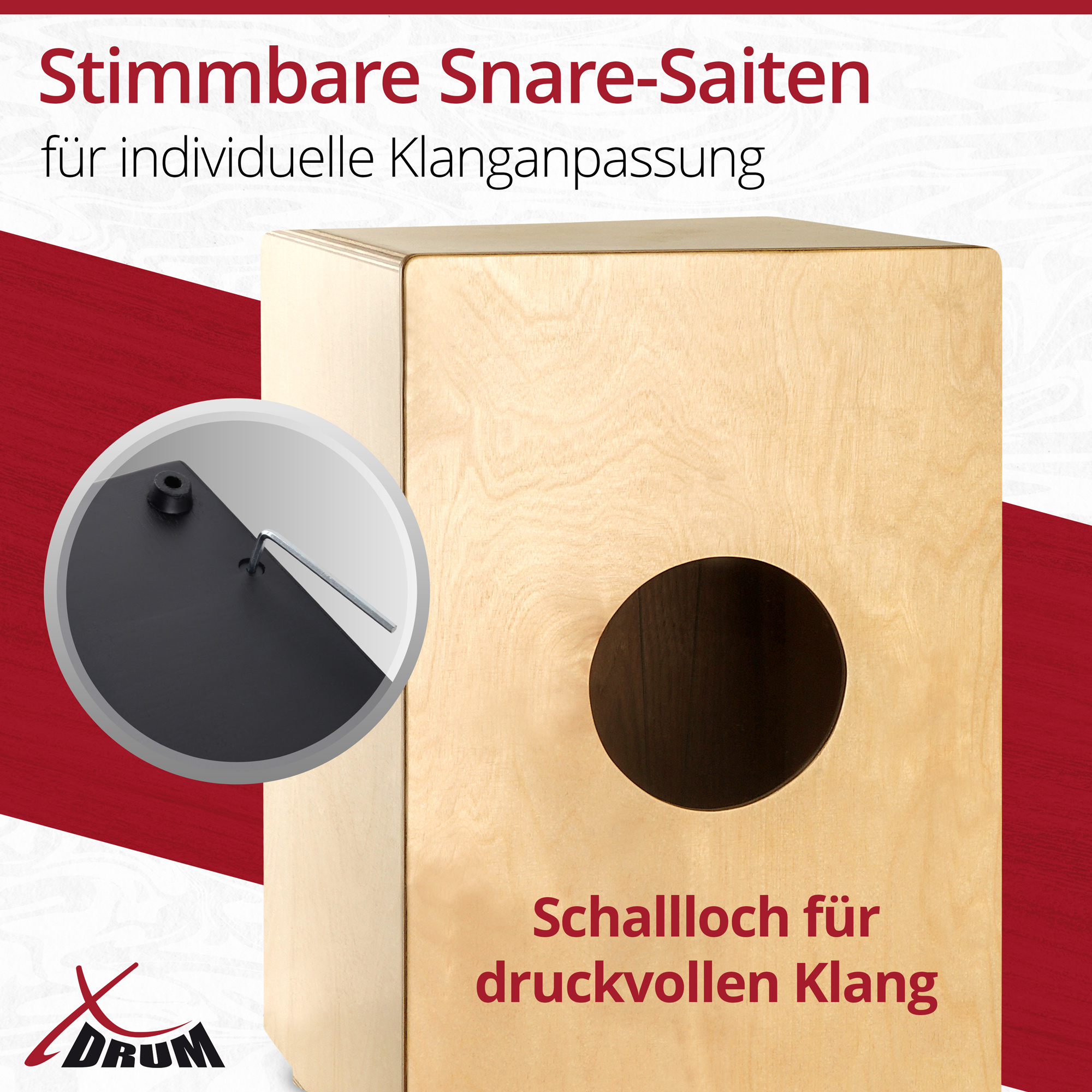 Ces cajones finement travaillés de la série "Peruana" de XDrum avec corps en bouleau de 9 mm et effet caisse claire offrent (en plus de leur design impressionnant) des sons de très haute qualité.