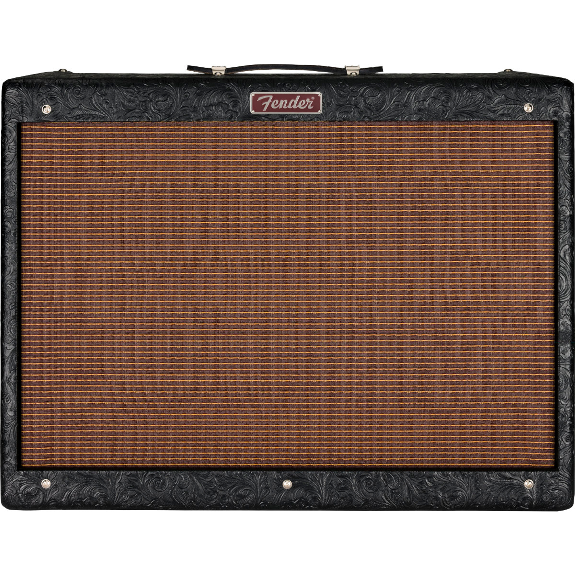 Le caisson est fabriqué en pin léger et recouvert d'un exclusif vinyle texturé Black Western — un vrai accroche-regard sur scène. Le panneau de commande en acier inoxydable poli et l'indicateur lumineux rouge "Jewel" renforcent le caractère vintage. La grille noire de style Bassman confère à l'ampli une esthétique Fender classique et élégante.