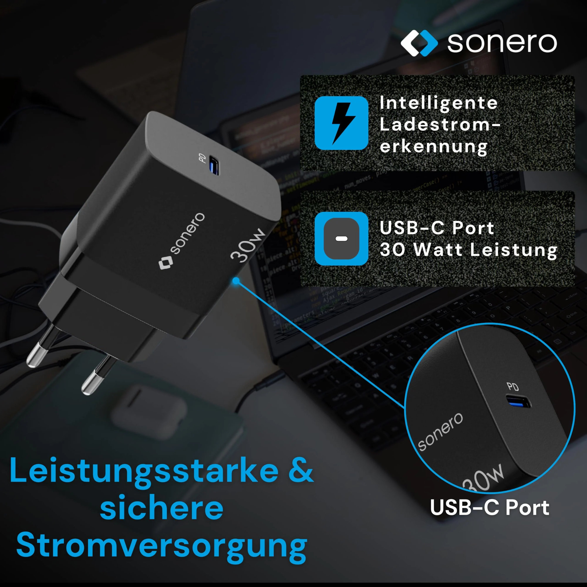 - 1 x Sonero 30W Adattatore USB-C PD Nero