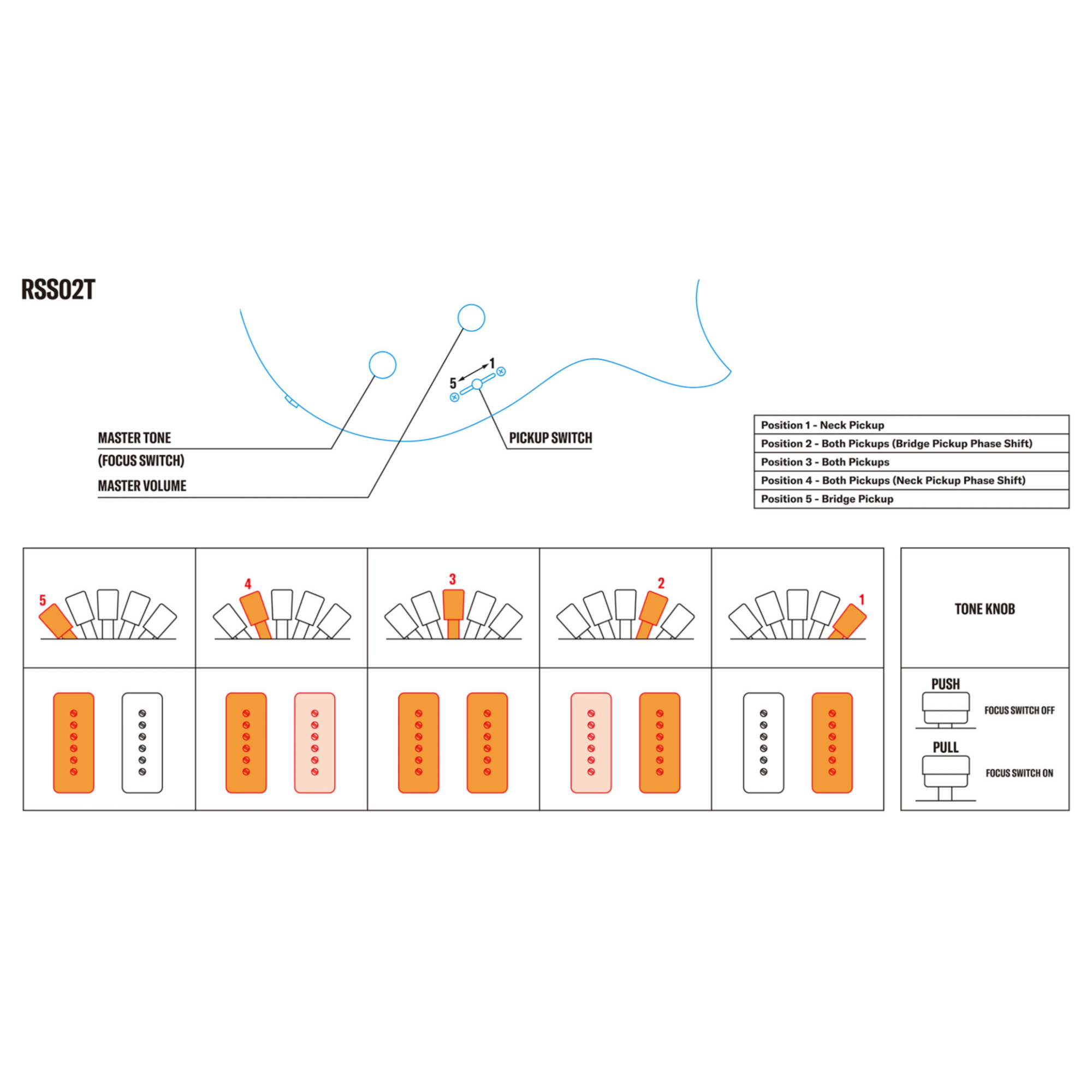 - Regler: 1x Master Volume, 1x Master Tone (Push-Pull "Focus Switch")