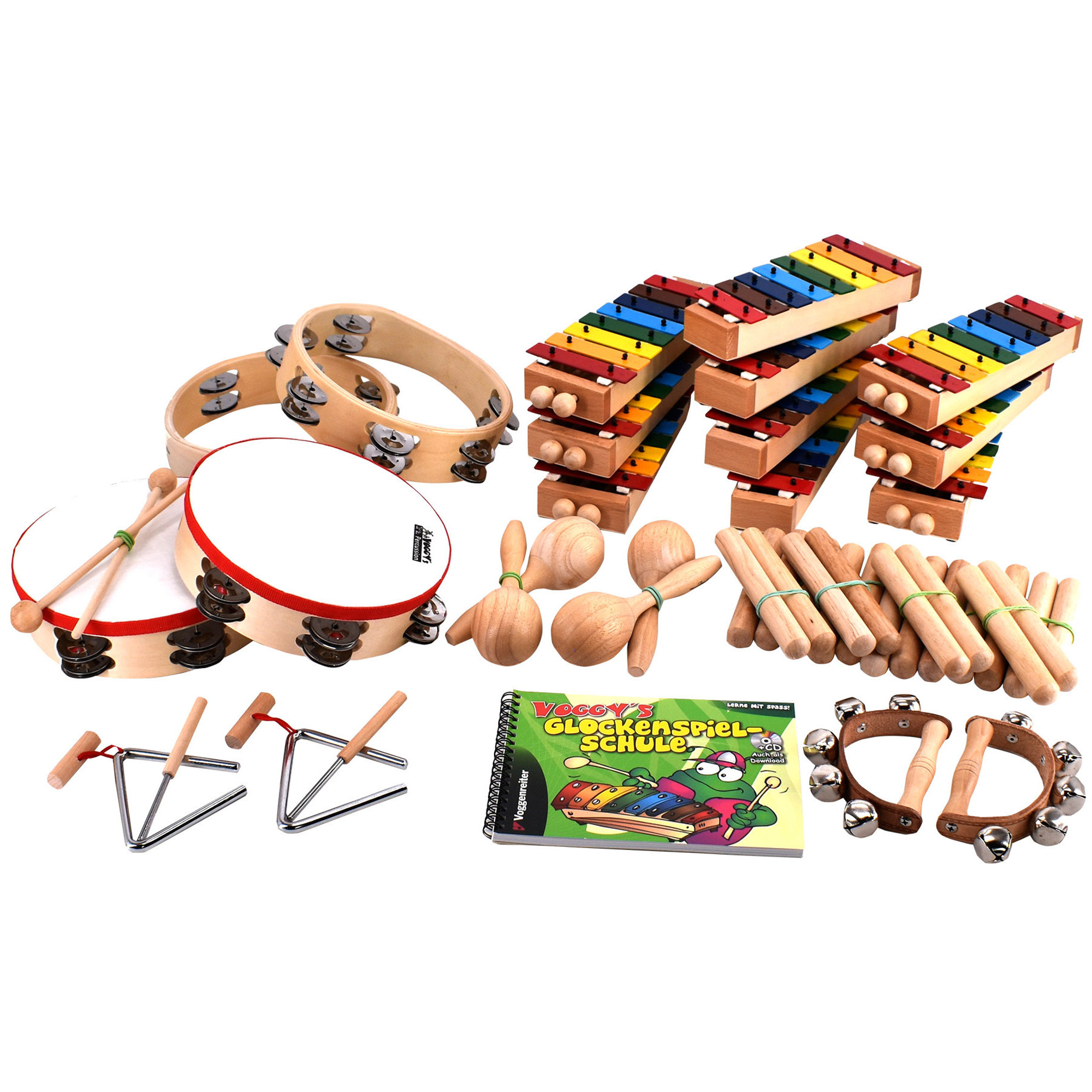 Il Voggenreiter Glockenspiel, un piccolo miracolo sonoro (diatonico, accordato da C a C), in combinazione con gli strumenti a percussione inclusi costituisce l'asset di base ideale per l'asilo. Nella Glockenspielschule allegata sono contenuti molti esercizi pratici e celebri canzoni per bambini con spartiti - e anche materiale per suonare direttamente seguendo i colori.
