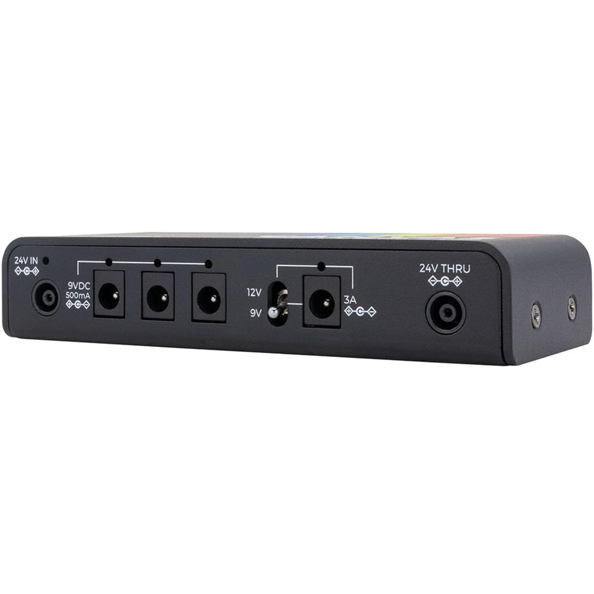 Il Canvas Power HP dispone di 3 uscite di corrente isolate che forniscono fino a 500 mA di corrente pulita a 9 V, e un’uscita isolata da 3 A con selezione 9 o 12 V. Sono inclusi vari cavi da 2,1 mm e 2,5 mm con polarità standard e invertita.