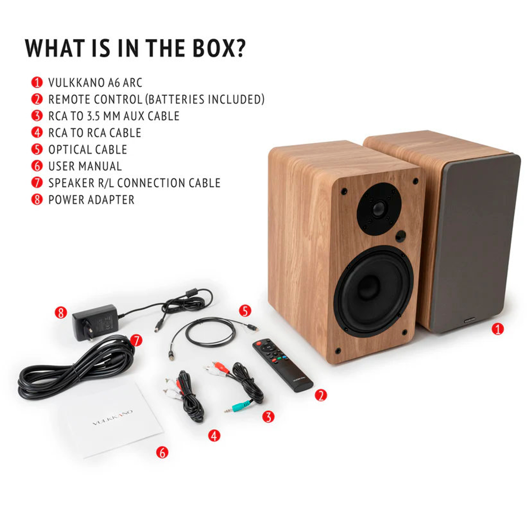 La Vulkkano A6 ARC alza il livello di potenza nella nostra gamma di casse attive. 120 W di potenza e definizione provengono da un woofer da 6,5" che raggiunge una risposta in frequenza da 30 Hz a 30 kHz.