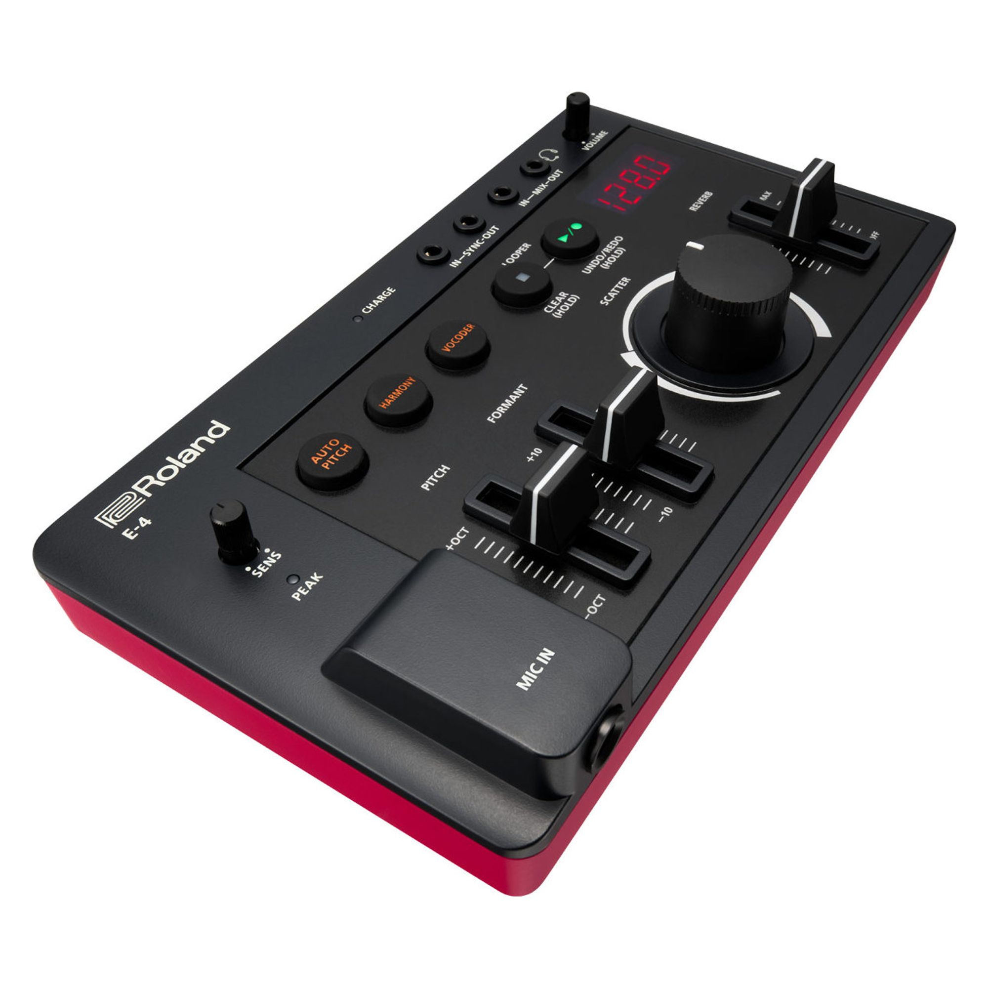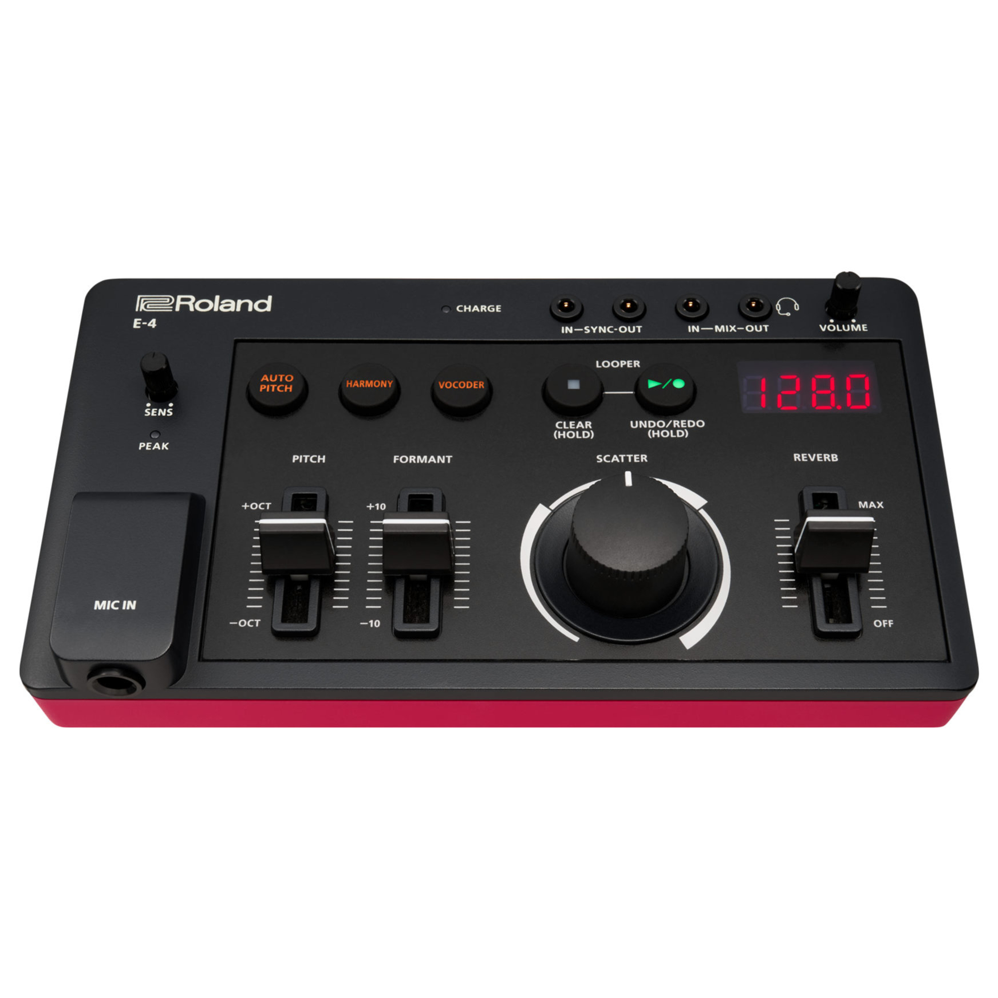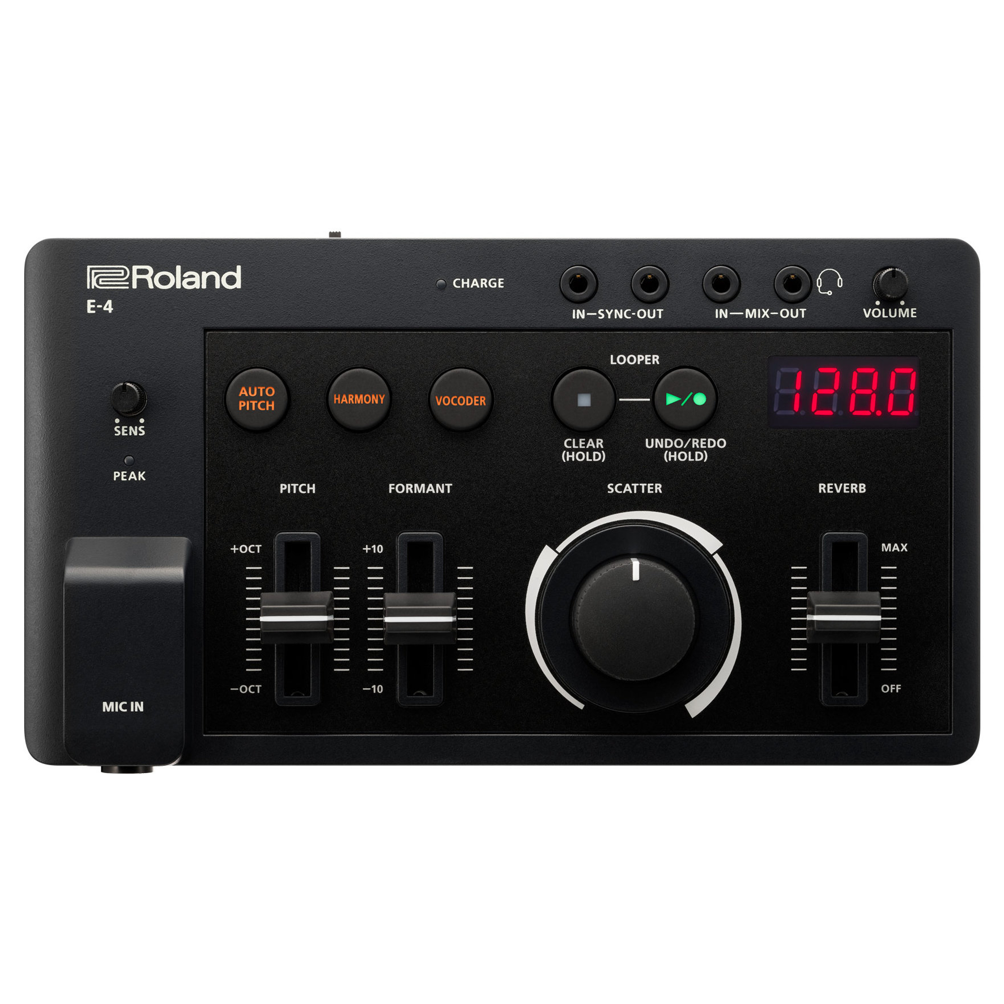 Met de 24-seconden looper wordt van één stem een compleet orkest gemaakt. Leg stem na stem over elkaar heen en transformeer ze met de effecten van de E-4 in buitengewone klankstructuren. Draai daarna simpelweg aan de Scatter-regelaar om je geluid in kleurrijke en opvallende klankhapjes te verdelen.